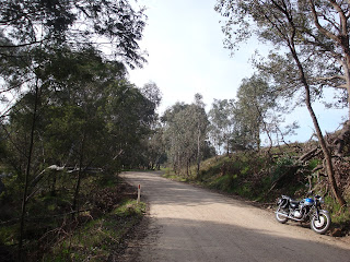 Today I had such a wonderful revelation. There is a road I have ridden partly, once on the GR650, and once on the Hornet. I had never taken it its full length. It is in my beloved "golden triangle", and is called Ponkeen Creek Road and then Hughes Creek Road. What I have failed to experience and know all this time is that some of the most beautiful parts of the triangle have been hidden from me, waiting for that day in August when I would cruise confidently along the dirt on my W650. What peace, and what beauty I found in this place.